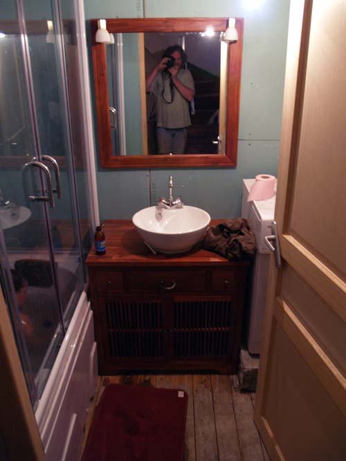 you can see her the shower and the floor , it's all in cement , had to smash all that down , especially the floor , wood boards undernieth i wanna refinish