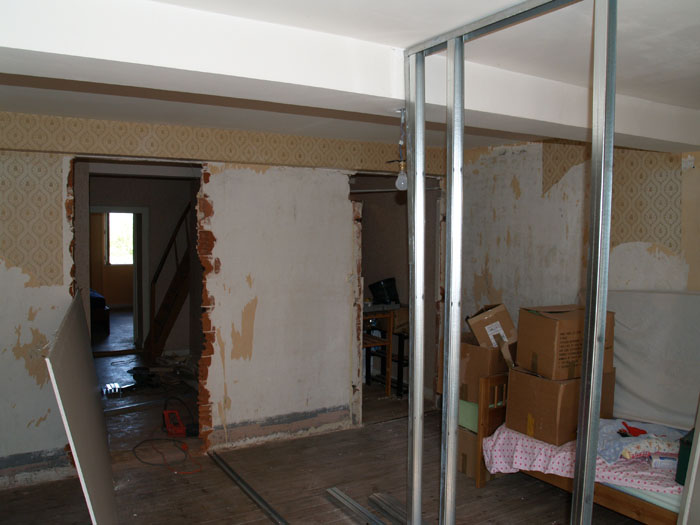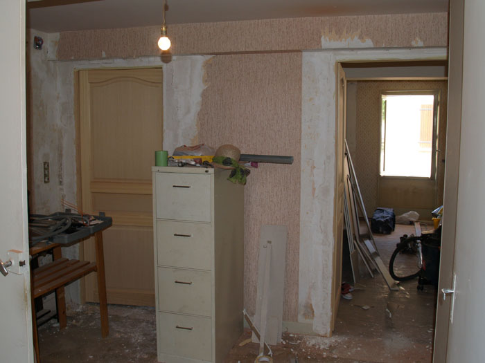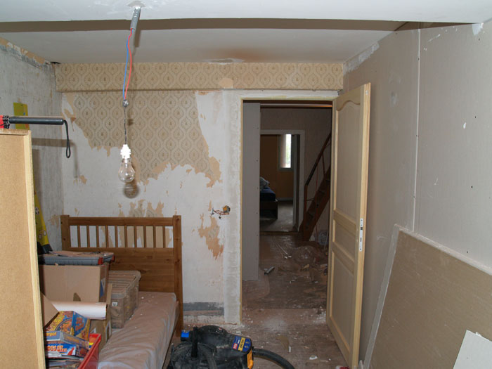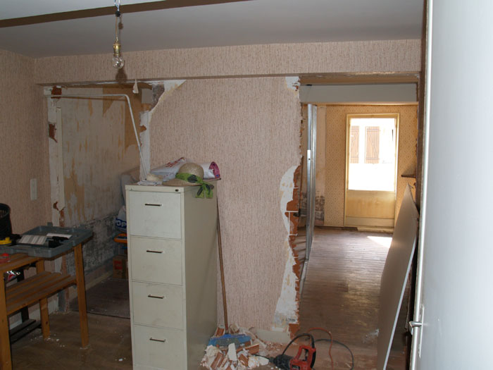 undid electrical and smashed out door to big room