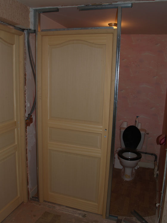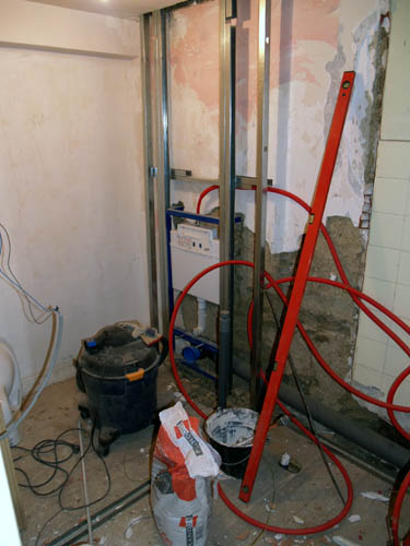 this is from bathroom lookin at toilet fixture , the shower will be in the way later , see new plumbin