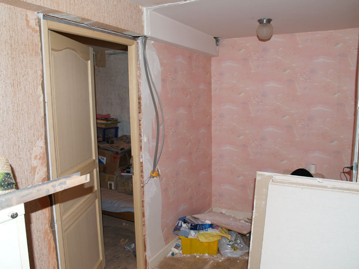 smashed down the rest of the walls to bathrroom and toilet , see i moved door here fopr bathroom had to pull out all the plumbin , all the waterlines also , redid it akll new , the water lines are all in plastic , with quick grip connections , garenteed for 50 years