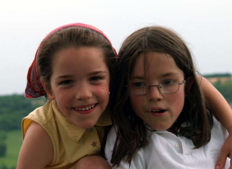 axelle in orange shorts zoey in pink