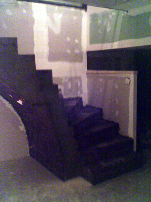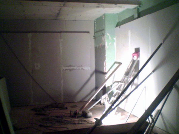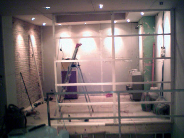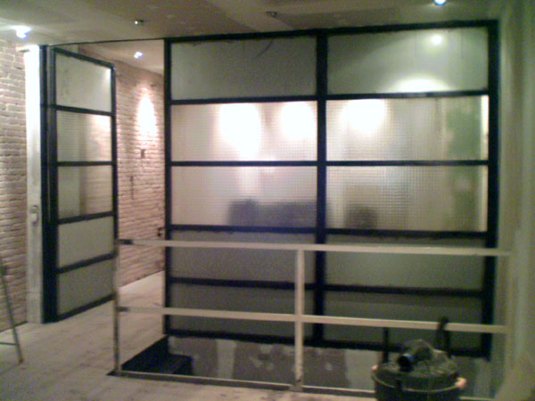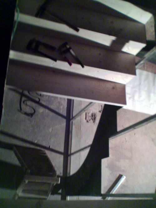 door adjusted glass and aluminum pannels possed , tonight i laque the wood on stairs and framein of wall and ddor , tommorow walls