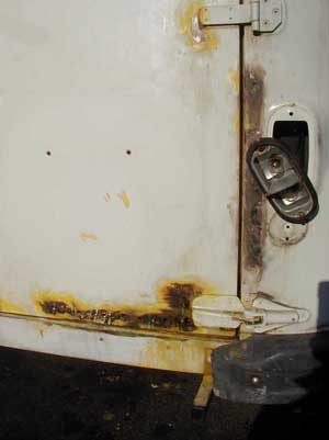 temporary repair of front doors the hinges rust out from inside